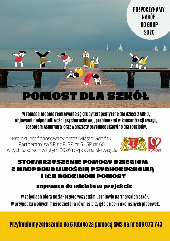 Jeszcze w lutym rozpoczniemy grupowe zajęcia terapeutyczne dla dzieci oraz warsztaty psychoedukacyjne dla rodziców w naszych partnerskich szkołach w Gdańsku: