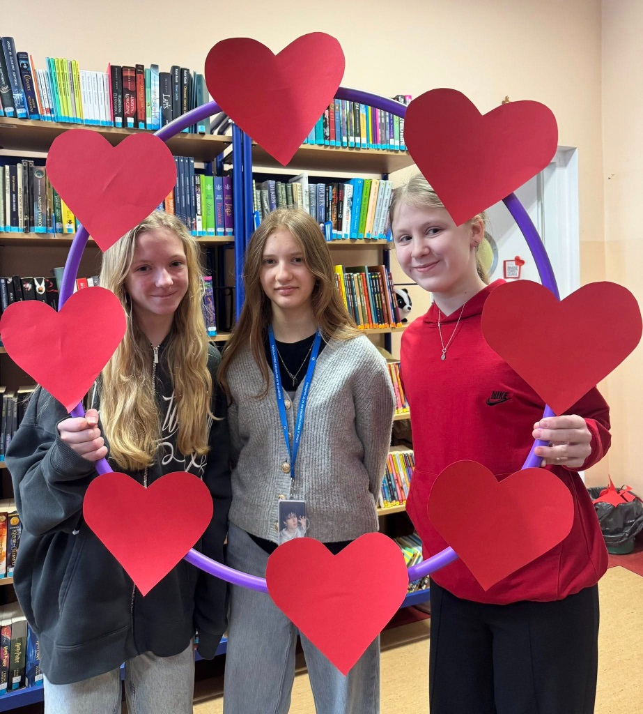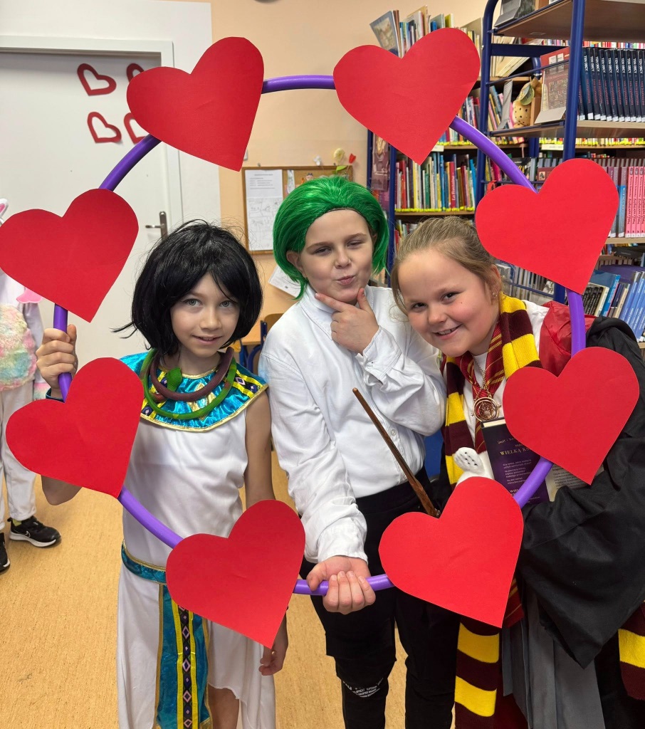 Biblioteka organizowała również akcje tematyczne. Z okazji Walentynek dzieci mogły wykonać pamiątkowe zdjęcie z ulubioną osobą, podkreślając, że czytanie – podobnie jak przyjaźń – łączy ludzi. Natomiast w Tłusty Czwartek odbyła się humorystyczna zabawa pod hasłem „Lepiej pożerać książki niż pączki”. Uczniowie twórczo przekształcali tytuły znanych książek, dopisując do nich słowo „pączek”, ćwicząc przy tym wyobraźnię i bawiąc się językiem.